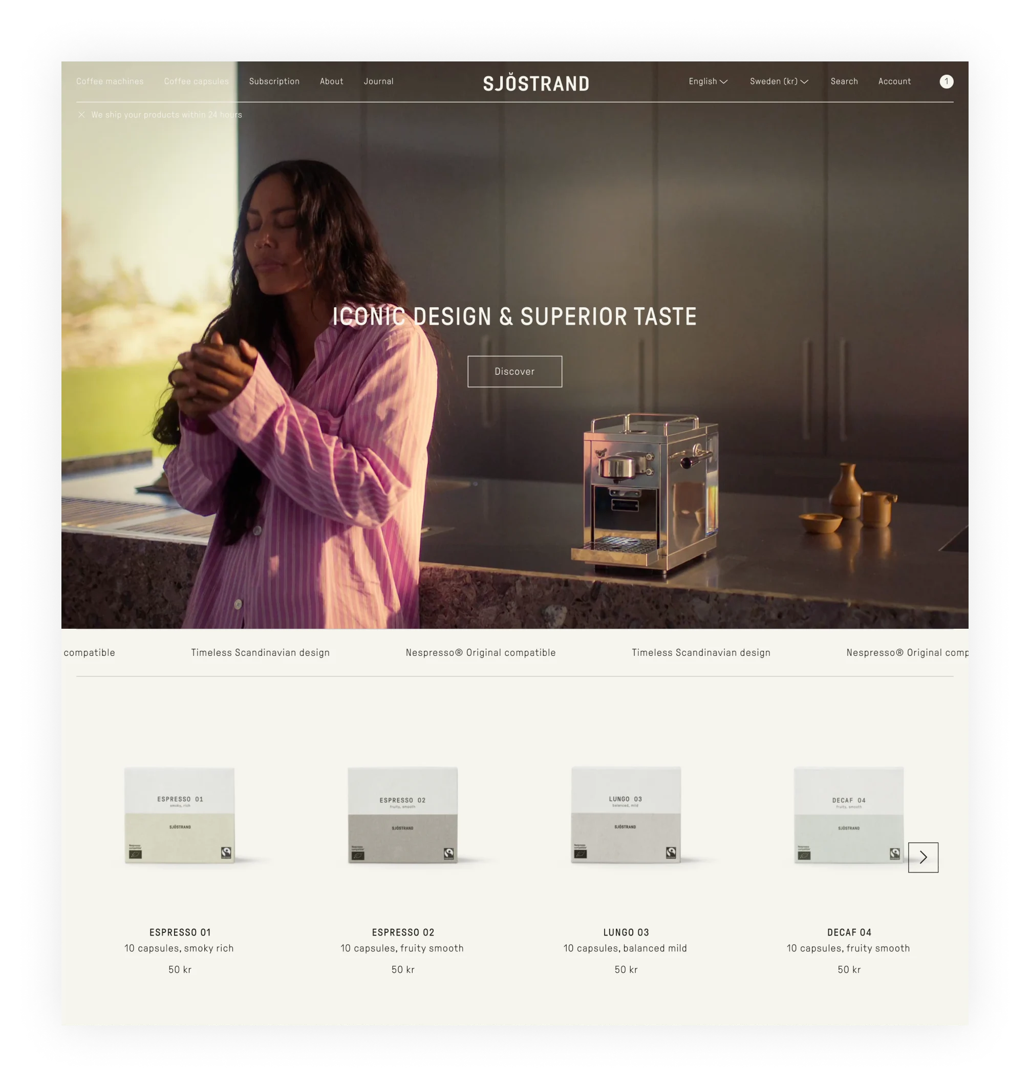Sjöstrand Coffee is a premium coffee brand designed for true coffee lovers. Engineered by Scandinavian craftsmen with an uncompromising focus on sustainability, Sjöstrand combines classic Italian espresso machine inspiration with cutting-edge innovation to create a modern design icon for the home.